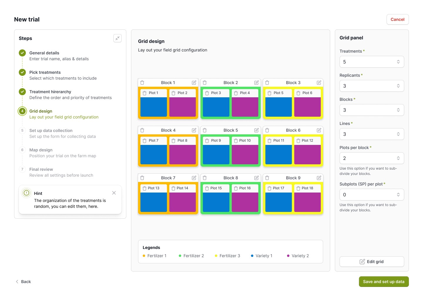 The client was Agriedge, who hired us to create the product from scratch. The goal was to design a solution that would reduce the time, cost, and complexity of running trials, while providing reliable, visual, and actionable insights that build trust with growers and speed up product adoption.
