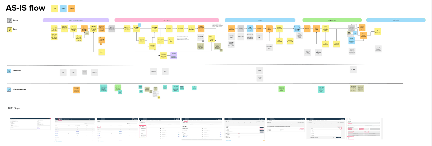 Designed flows for growers, dealers, and FSRs (eligibility, enrollment, product selection, compliance).