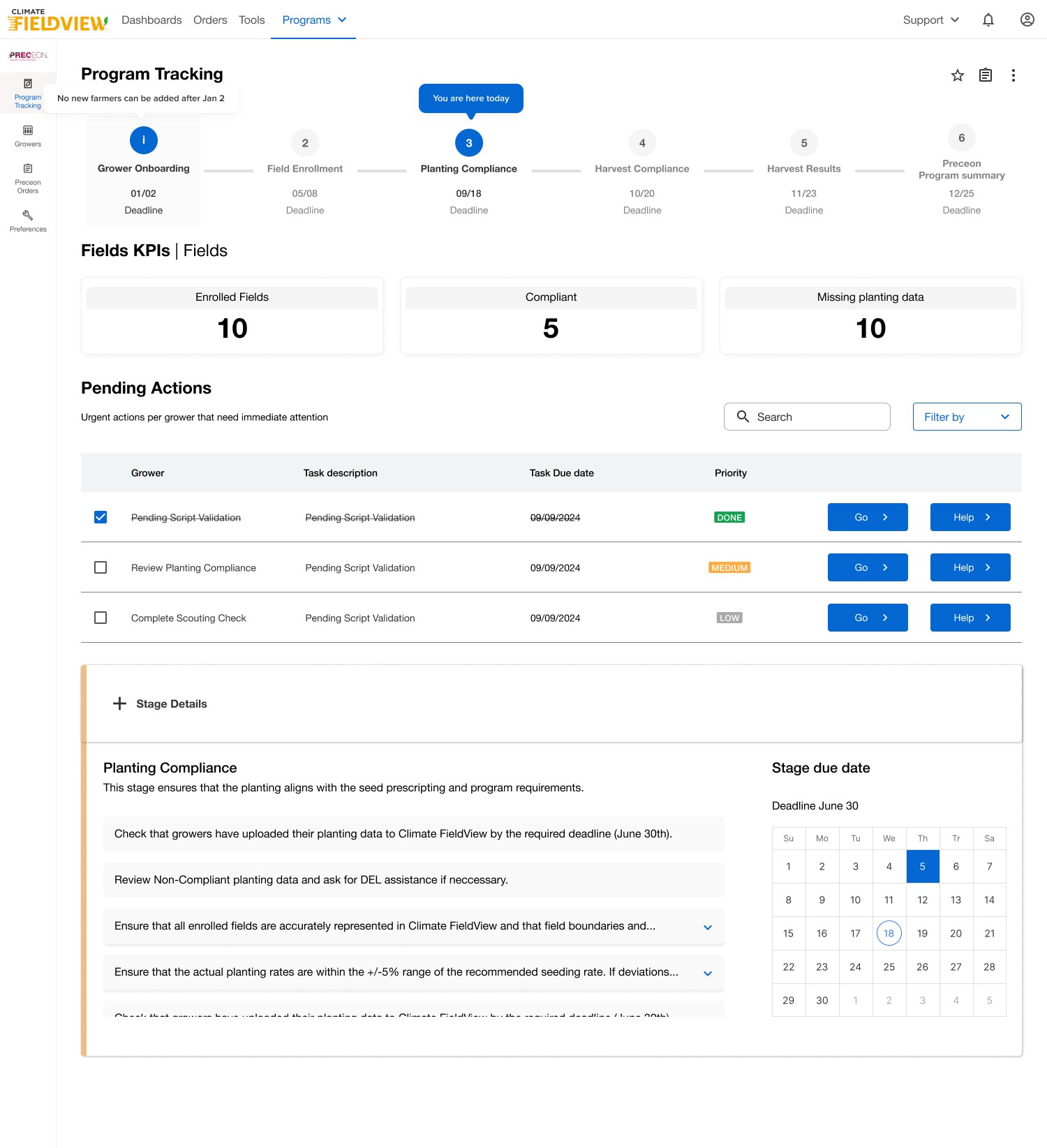We proposed a Preceon module inside FieldView, covering the full program lifecycle: